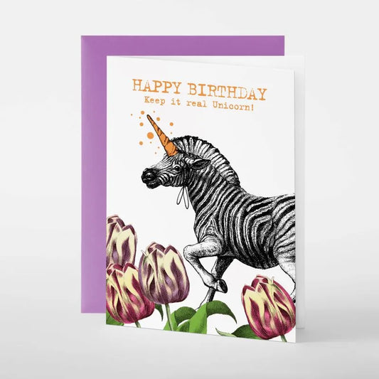 Carte de Vœux Birthday Unicorn Zebra Pabuku