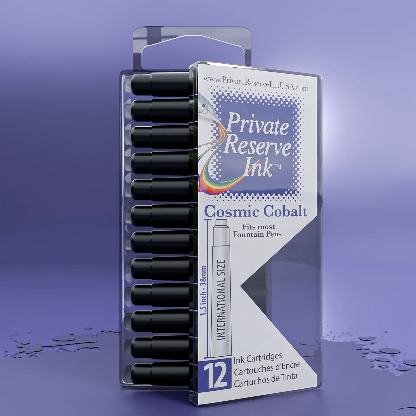 Les cartouches Cosmic Cobalt de Private Reserve Ink offrent un mélange cosmique de bleu profond avec des nuances violettes. Sa fluidité et ses teintes brillantes la rendent idéale pour les projets créatifs et pour ajouter une touche de beauté céleste à votre écriture. La saturation élevée de l'encre et sa formulation supérieure garantissent une performance constante, créant un impact visuel époustouflant.