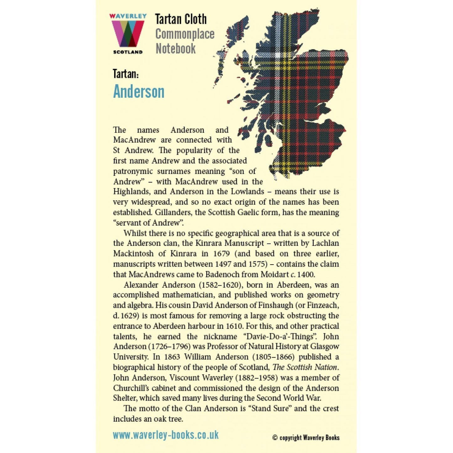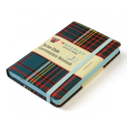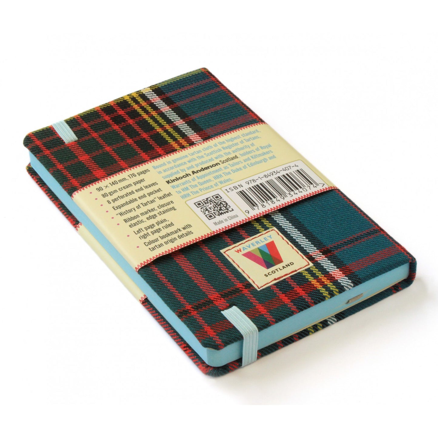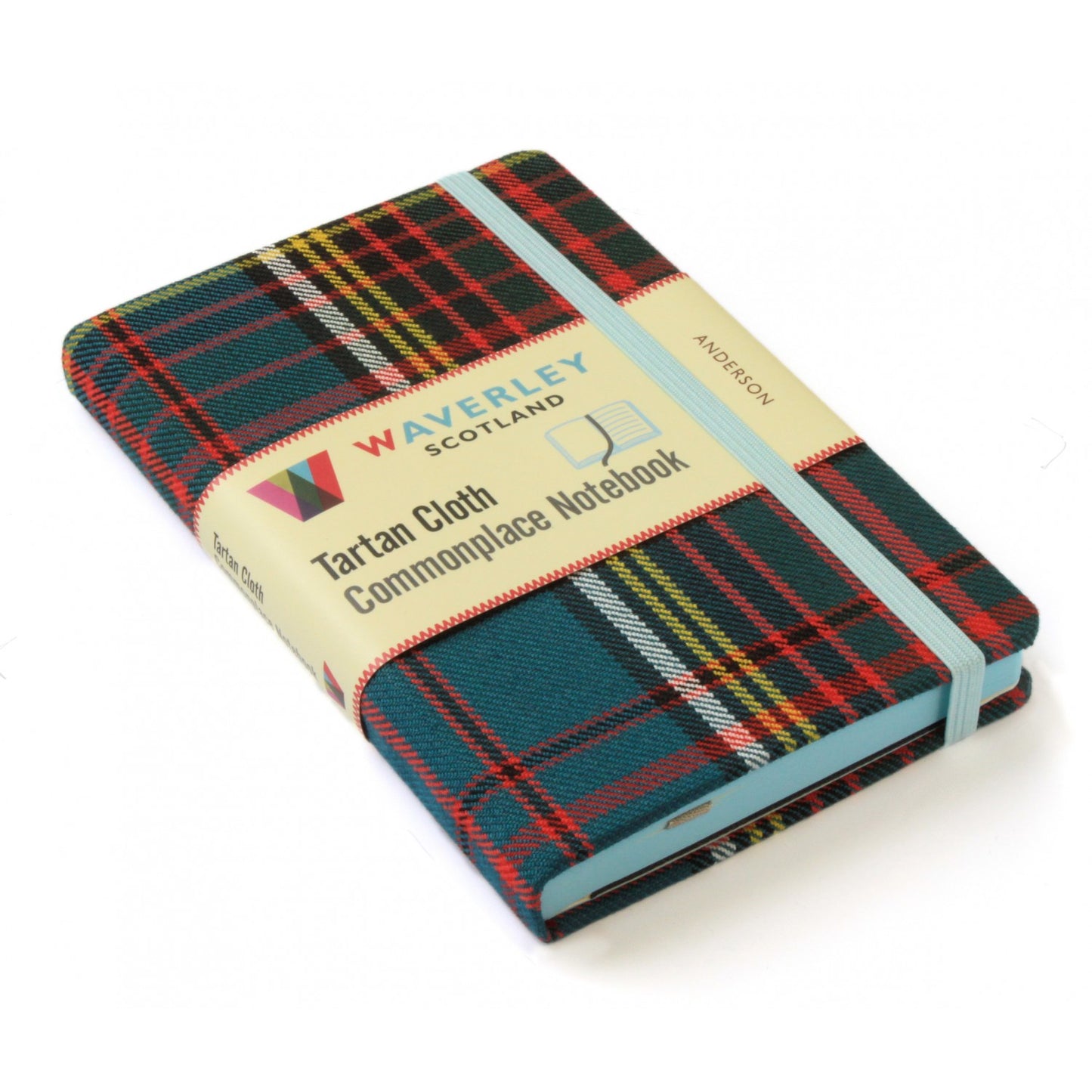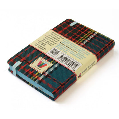 La couleur prédominante du notebook tartan Anderson de Waverley Scotland est un bleu clair froid, croisé avec du rouge, du jaune, du noir et du blanc.