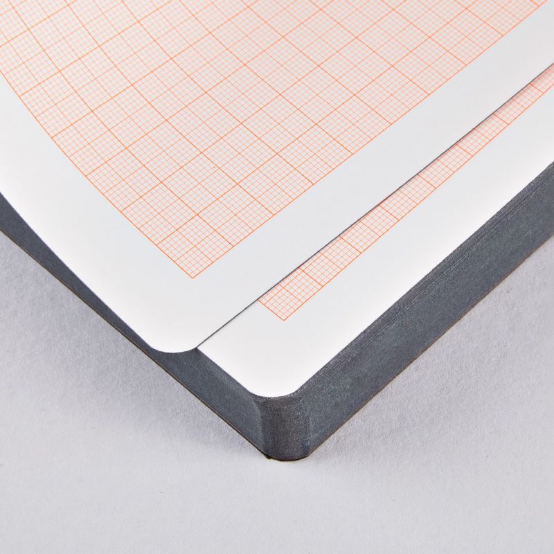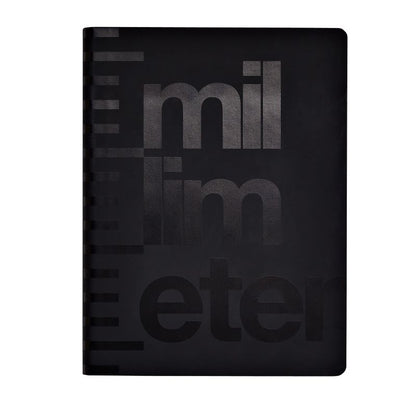 Que vous soyez architecte, ingénieur ou typographe, ce carnet muni de papier millimétré orange fluo est parfait pour tous ceux qui ne prennent pas les centimètres trop au sérieux. La sérigraphie brillante sur cuir recyclé noir mat rendra votre travail de précision aussi beau que possible.