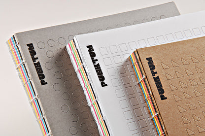 Le Punktum de Happily Ever Paper est un carnet cousu de type Smyth de manière exposée, qui vous donne la possibilité de créer des motifs uniques sur la couverture. Déchirez les formes sur la couverture et choisissez la couleur intérieure qui vous convient. Le look de votre Punktum dépend de vous ! Et comme on dit, chaque point compte...