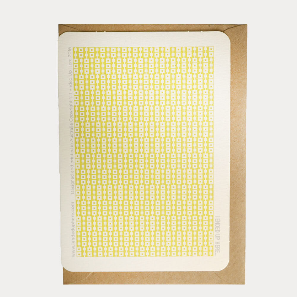 Cette carte de vœux A6 de cirque d'inspiration vintage est imprimée sur un papier texturé crème pâle de qualité. Le concept de carte à jouer se poursuit au verso avec un imprimé géométrique coordonné. Présenté avec une enveloppe kraft à l'intérieur d'une pochette cello.