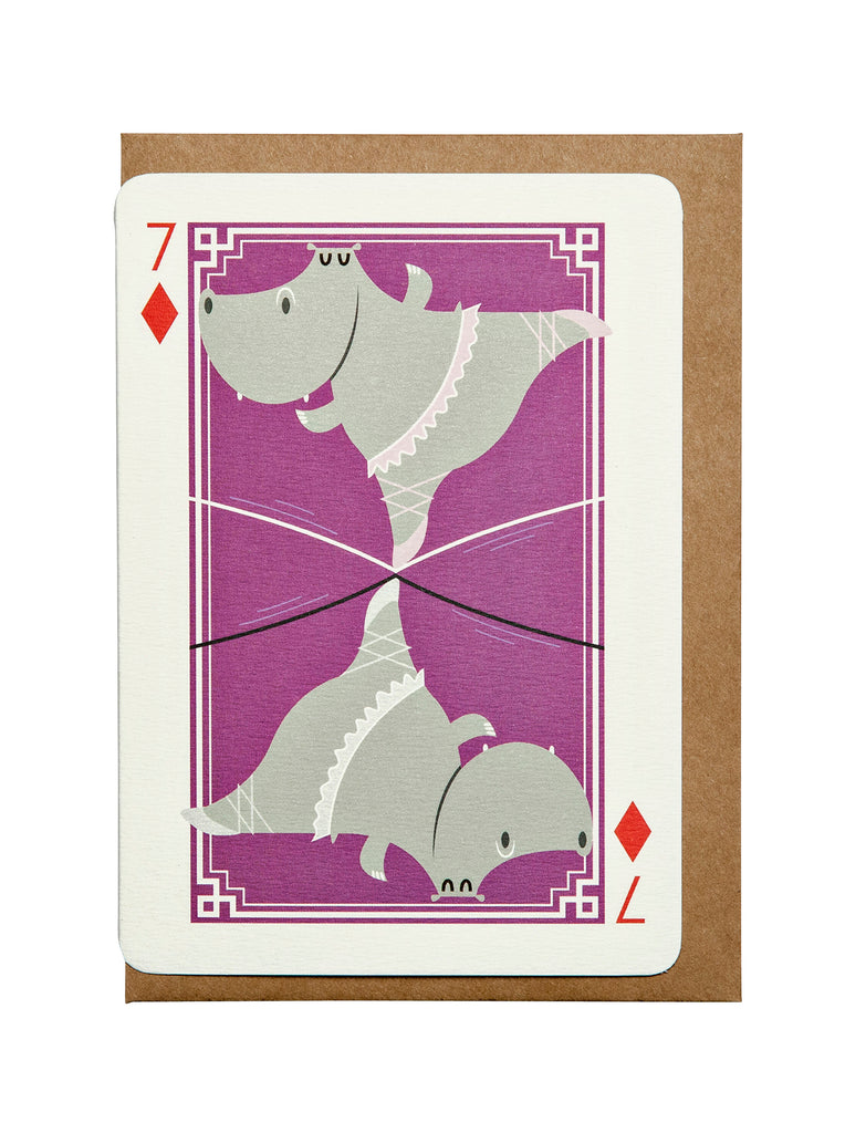 Cette carte de vœux A6 de cirque d'inspiration vintage est imprimée sur un papier texturé crème pâle de qualité. Le concept de carte à jouer se poursuit au verso avec un imprimé géométrique coordonné. Présenté avec une enveloppe kraft à l'intérieur d'une pochette cello.