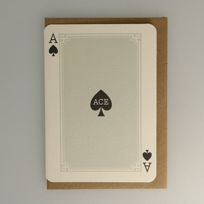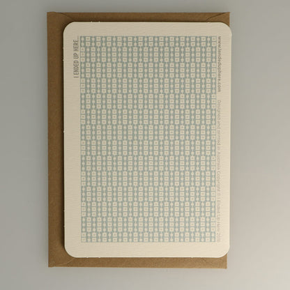 Cette carte de vœux A6 de cirque d'inspiration vintage est imprimée sur un papier texturé crème pâle de qualité. Le concept de carte à jouer se poursuit au verso avec un imprimé géométrique coordonné. Présenté avec une enveloppe kraft à l'intérieur d'une pochette cello.