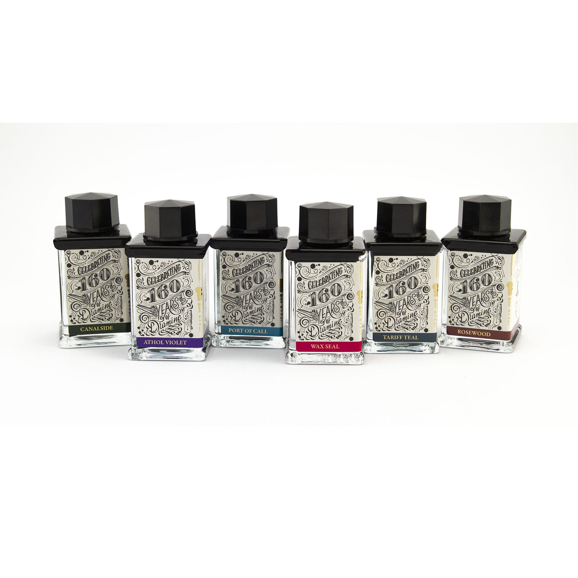 Diamine vous propose sa nouvelle gamme d’encres pour stylo-plume célébrant leur 160ᵉ anniversaire ! S'inspirant de l'histoire riche de Diamine dans le domaine de la fabrication d'encres, cette collection rend hommage à l'usine emblématique de Tariff Street, spécialement conçue pour la production d'encre. Situé à proximité du canal, un axe commercial stratégique, et à l’angle de la rue Athol, ce bâtiment a constitué, dès son ouverture en 1925, un véritable carrefour d’import-export. À travers cette collection, Diamine souhaite retranscrire l’atmosphère de l’époque, l’effervescence des quais ainsi que le charme vintage des tables en bois de rose et des cachets de cire.
