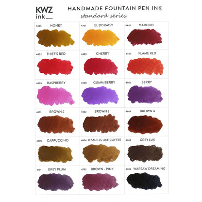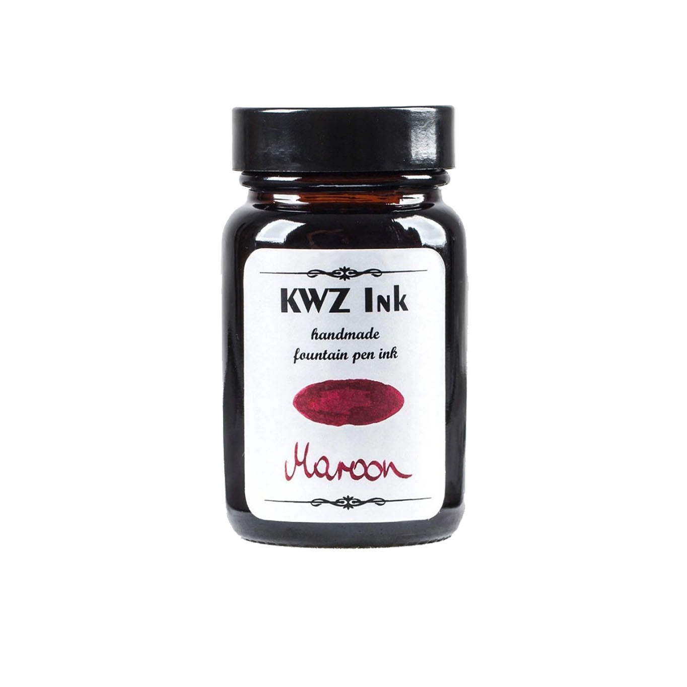 Encre classique maroon pour stylos plume de la marque Kwz Ink. Cette encre marron est à base de colorants et d’eau, elle n'est donc pas résistante à l’eau ! Elle se distingue cependant par une saturation intense des couleurs et une excellente fluidité, pour une écriture agréable et régulière.