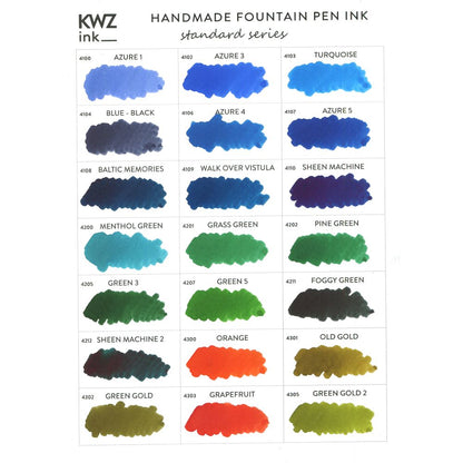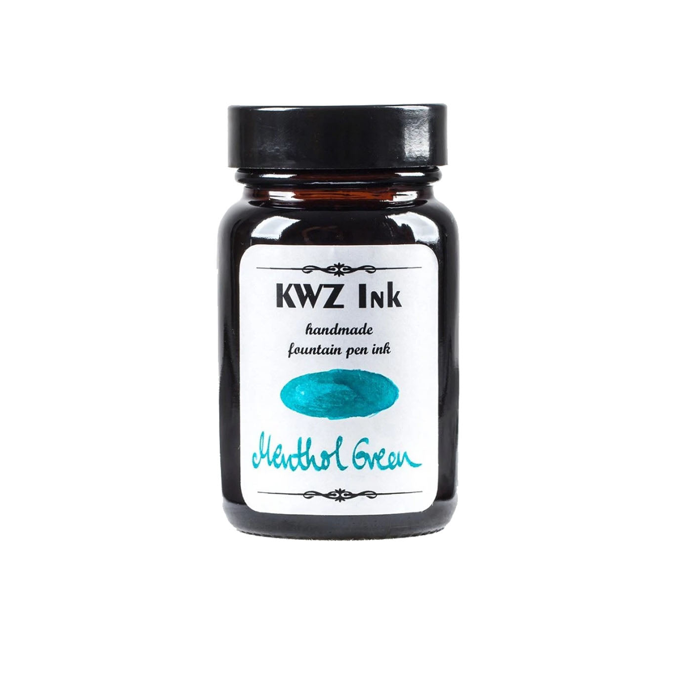 Encre classique menthol green pour stylos plume de la marque Kwz Ink. Cette encre verte est à base de colorants et d’eau, elle n'est donc pas résistante à l’eau ! Elle se distingue cependant par une saturation intense des couleurs et une excellente fluidité, pour une écriture agréable et régulière.