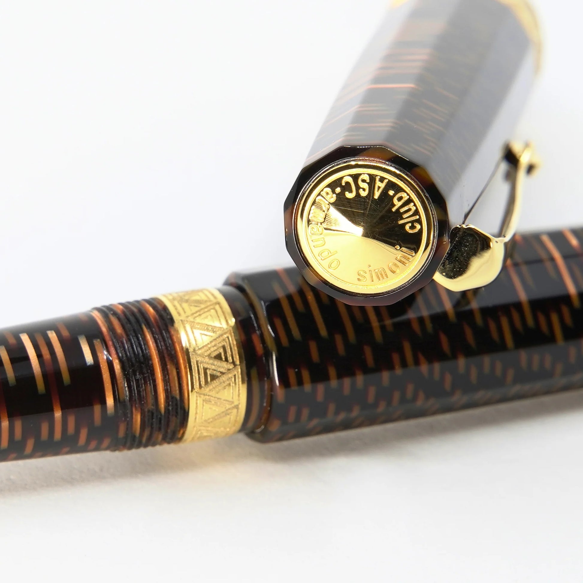 Le Gladiatore Medio Skyscraper Bronze est une addition remarquable à la collection de stylos plumes d'Armando Simoni Club. Ce bijou d'écriture haut de gamme est confectionné à partir de feuilles de celluloïd ASC, évoquant le célèbre stylo plume Parker Vacumatic.