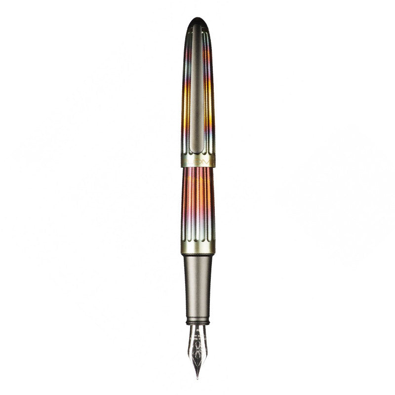 L’Aero Flame reprend la technique de fabrication inédite du Traveller Flame. Chaque pièce est fabriquée en acier inoxydable et flammée à la main par les artisans de Diplomat pour un décor au rendu unique.