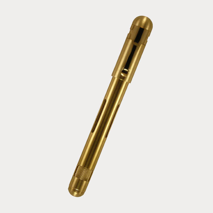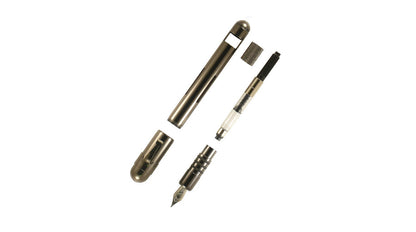 Il est fabriqué à la main en Italie et est équipé d'un convertisseur Schmidt K6 et d'une plume en acier inoxydable Schmidt. Il se décline en trois finitions : laiton brut, noir et chrome et avec l'option de deux types de plume : extra-fine et fine.
