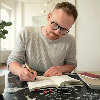 L'utilisation de matières premières renouvelables réduit la quantité de plastique utilisée et permet d'économiser environ 70 % de CO2 par rapport à un stylo-plume fabriqué en plastique conventionnel. Le produit est totalement neutre sur le plan climatique, car nous compensons toutes les émissions de CO2 restantes en soutenant un projet certifié de protection du climat. Le corps du stylo est fabriqué en bois certifié FSC à 100%, provenant de forêts allemandes gérées durablement. Ce stylo-plume est de couleur bleu myrtille/ bois de hêtre, avec une plume taille M qui conviendra à tous.