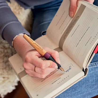 L'utilisation de matières premières renouvelables réduit la quantité de plastique utilisée et permet d'économiser environ 70 % de CO2 par rapport à un stylo-plume fabriqué en plastique conventionnel. Le produit est totalement neutre sur le plan climatique, car nous compensons toutes les émissions de CO2 restantes en soutenant un projet certifié de protection du climat. Le corps du stylo est fabriqué en bois certifié FSC à 100%, provenant de forêts allemandes gérées durablement. Ce stylo-plume est de couleur violet prune / bois de cerisier, avec une plume taille M qui conviendra à tous.