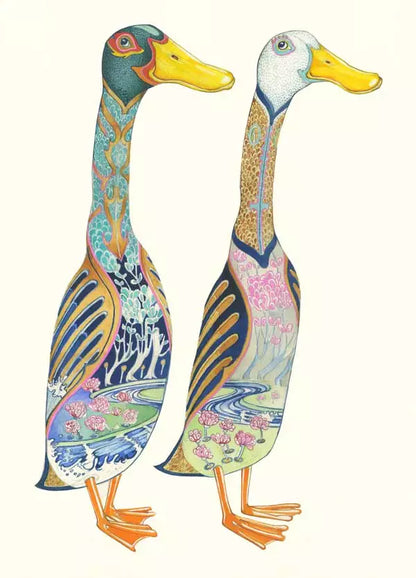 The DM Collection vous présente cette carte avec l'illustration aquarelle d'un canard coureur indien réalisée par Daniel Mackie. Elle est imprimée sur une carte 330 g/m² de haute qualité et 7x5 pouces.