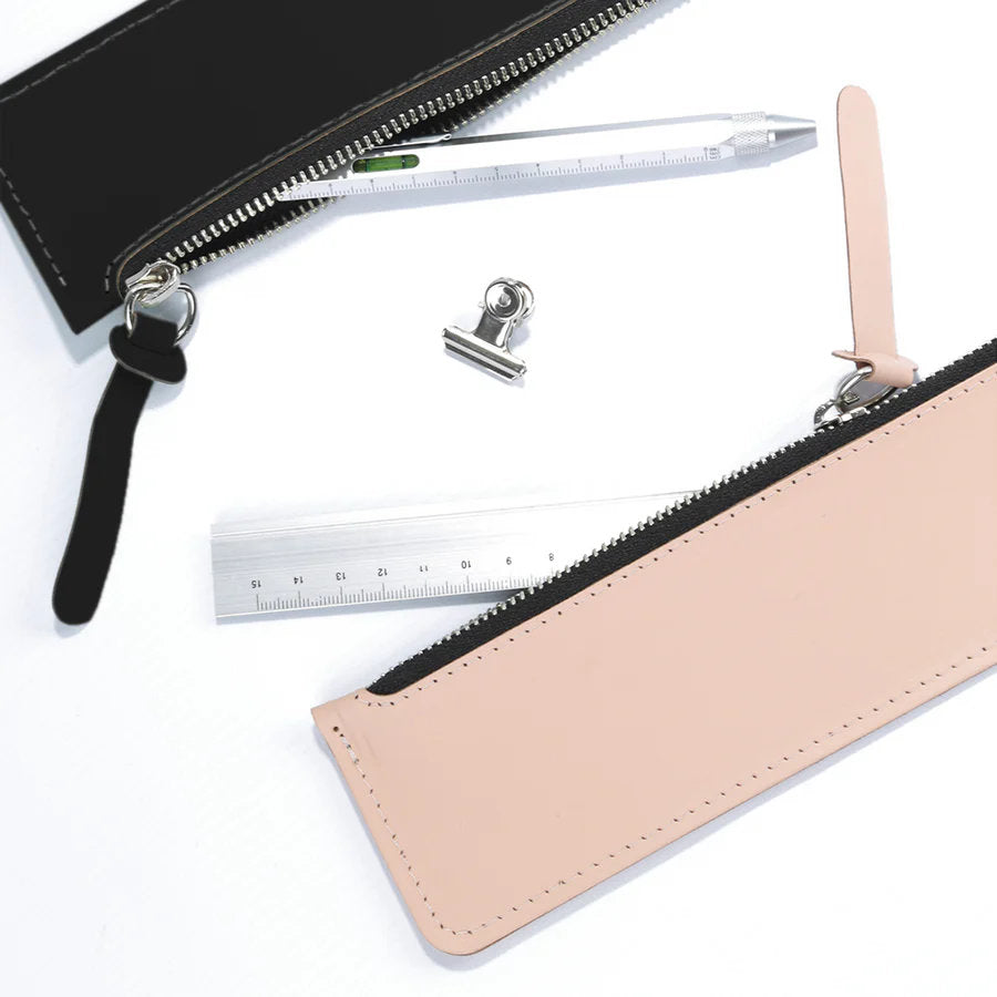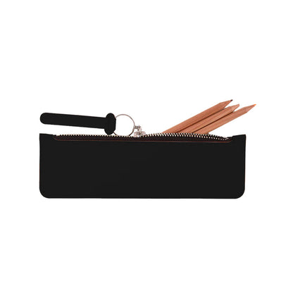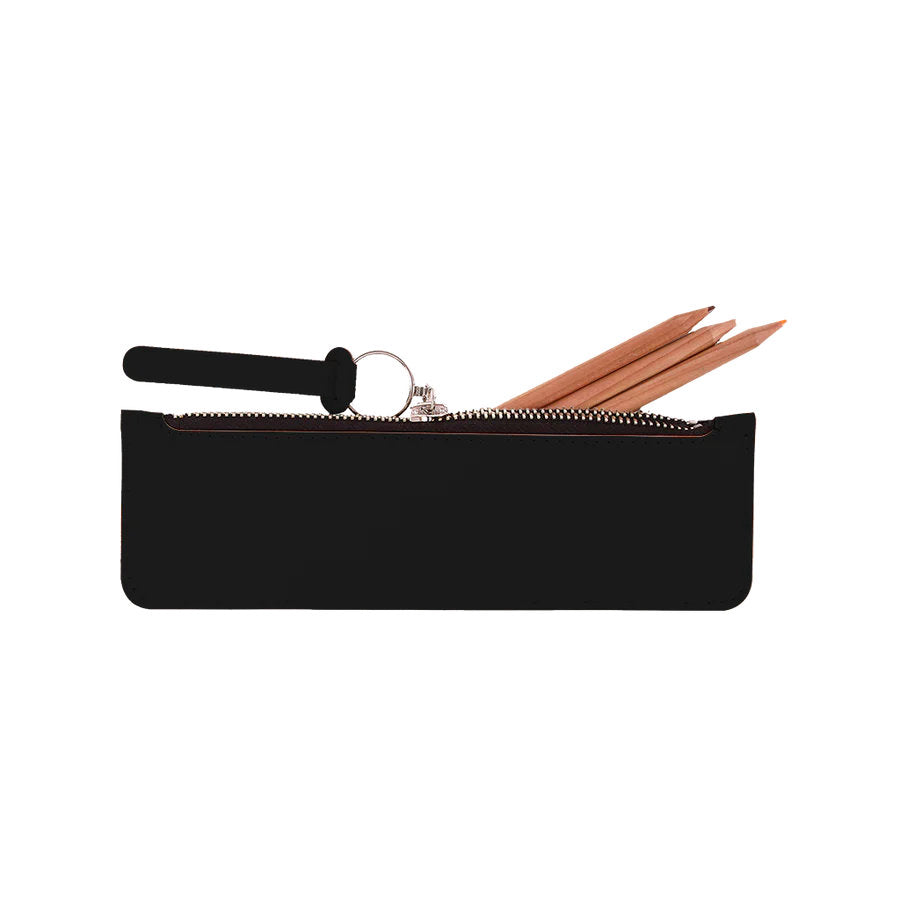 Une petite trousse plate, idéale pour transporter vos stylos, crayons, pièces de monnaie, bijoux, maquillage, etc... Avec son design minimaliste, élégant et agréable au toucher, elle vous accompagnera longtemps. Il s'agit d'un produit durable, fabriqué à la main à partir de cuir recyclé à 100 %. Trousse de taille S et de couleur noire.